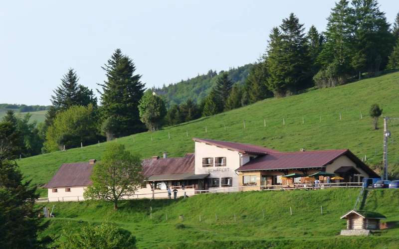 The Schafert rises majestically above Kruth-Wildenstein Lake. The ancient farm has gradually been restyled to adjust to the needs of agriculture and the inn, without taking away any of the charm and special character of this farm inn, which offers you “marcaire” farm meals in a typical, warm atmosphere and cheeses produced on the farm to buy and take away.