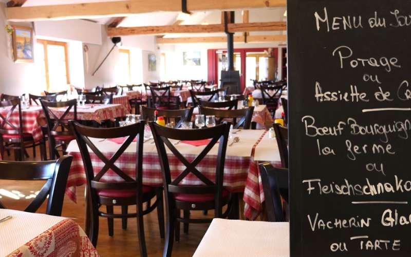 Le couvert: bœuf gros sel, tourte tête de veau vinaigrette, viande fumée, palette à la bière, spécialités alsaciennes sur commande. 2 salles pour 90 convives.